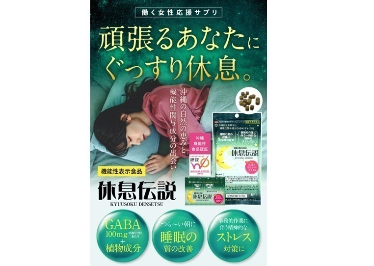 健康的な生活には睡眠は欠かせないもの。いまや5人に1人がなにかしら睡眠に悩みを抱えている時代だといわれており、その背景として年々深刻化する現代のストレス社会が原因のひとつとして考えられています。発酵エキスのGABA2種類を入れ、栄養素豊富なスーパーフードの「モリンガ」「ウコン」「長命草」の6種類を配合した、ストレス軽減、睡眠の質の改善のための健康食品です。